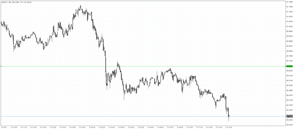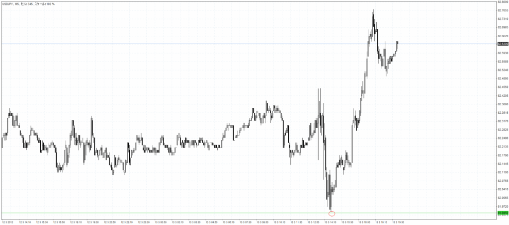 こちらはドル円5分足です。