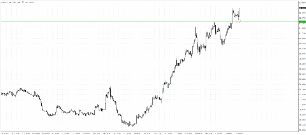ごらんの通り水平線上で反発が起きてそのまま上昇していますね。
